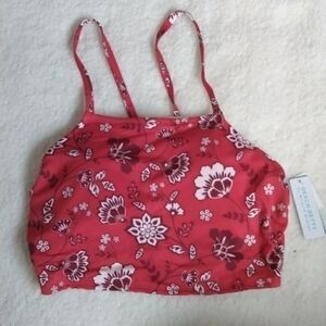 You're bound for the Malibu shoreline in Beach Betty's Slimming Control High Neck Bikini Top. The boho-beautiful floral print shines in shades of red, a perfect look for summer. The square high neck is perfectly on trend, while adjustable straps and a lace up back make sure you have a perfect fit. Sewn in foam cups and a supportive bra sling give you a beautiful shape, while Miracle Brands exclusive fabric keeps everything smooth and sleek. Pair with your favorite Beach Betty bikini bottoms and brave the waves!