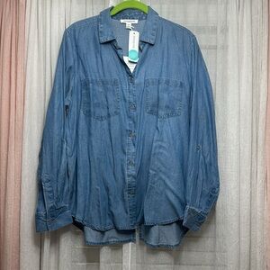 beachlunchlounge Arlita Chambray Button-Up Shirt in Medium Blue