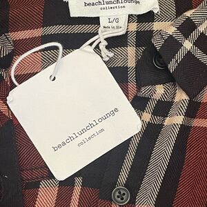 NWT Beachlunchlounge Charley Plaid Button Down Shirt Size Large Black Coffee