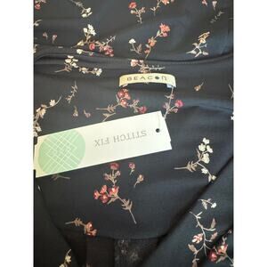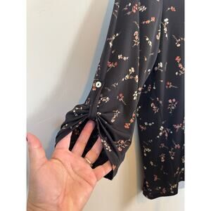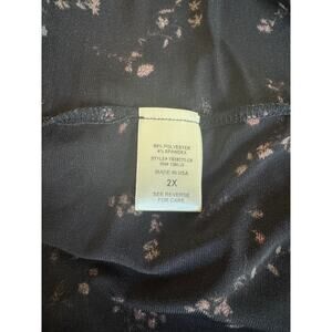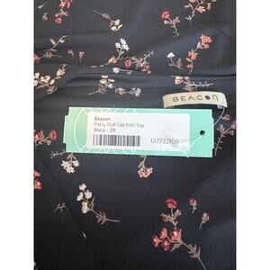 NWT Beacon Black Floral Top Blouse Sz 2X Roll Tab Sleeve Boho Casual Career