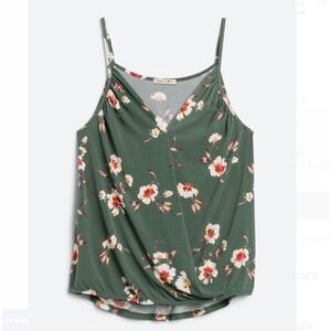 NWT Beacon Niomie Surplice Knit Tank, Olive Green Floral Relaxed Fit Size M