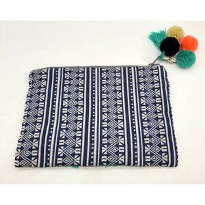 NWT Beaded Embroidered Tassel Makeup Pouch Zipper Bag Boho Seashell Travel Weave