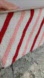 Celebrate with this handmade beaded clutch featuring vibrant red and pink stripes. Perfect for adding a touch of joy to any outfit.