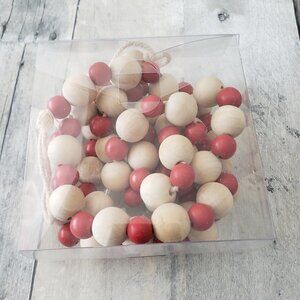 NWT - Beaded Wood Garland 6ft. Long red and natural