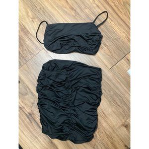 Beagimeg Ruched Cami Crop Top Bodycon Skirt 2 piece Dress-