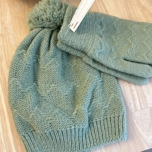 The perfect gift for any of the ladies on your holiday shopping list. Beautiful orange knit Pom Pom beanie with matching mittens.
