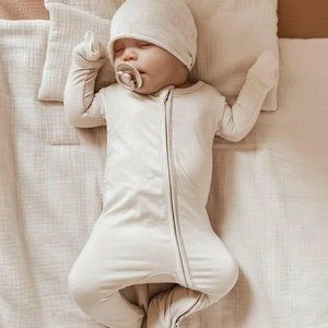 NWT Bear's Little Fish Bamboo Zippered Romper Sand Dune 0-3 Months