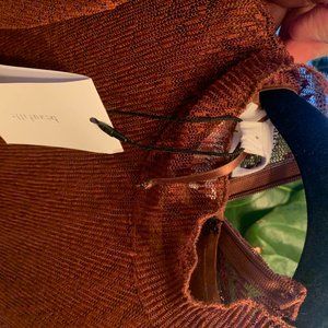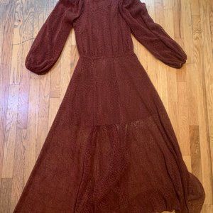 NWT from Beaufille. Delicate pleated mesh, gathered mockneck bodice with voluminous long sleeves and invisible back zip closure. Full skirt, very victorian vibe. Short slip lining. Sort of spooky and perfect for Halloween!