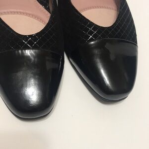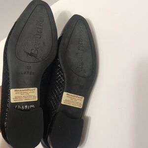Brand new but they have a small scuff at back of left shoe due to storage see last photo.