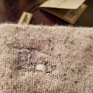 Burberry logo stitched into one glove. Care tags are attached. Rare, hard to find item! It is so soft and beautiful but Florida doesn't get that cold.