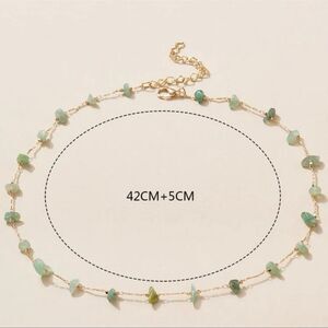 Beautiful dainty green stone gold tone necklace. I don’t know what the stone is. Maybe aventurine. 6