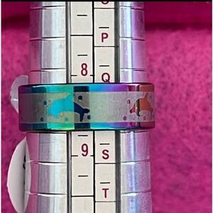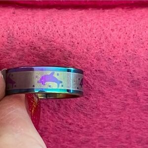 NWT Beautiful Stainless Steel Iridescent Rainbow Dolphin Ring Sz 8.5