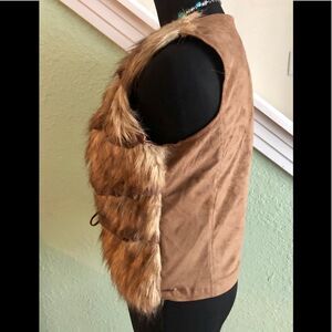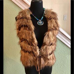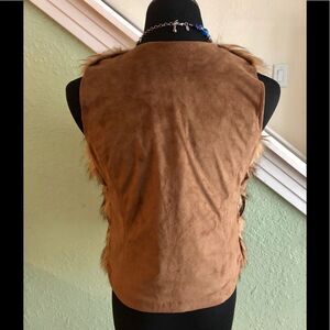 Beautiful sleeveless vest by Bagatelle in size small. New with tag. She’ll 100% Polyester and faux fur. Closes with streps. Is completely lined. Very soft material.