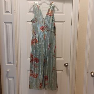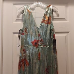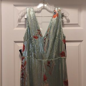 Brand new absolutely stunning fully sequined jumpsuit from Bebe. Teal florals straight leg design and sleeveless. This is the perfect professional jumpsuit to wear to any event. Pair with a blazer for more classy looks or a normal jacket for more casual. Sure to make you stand out in the crowd.