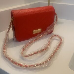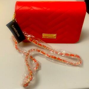 NWT Bebe Crossbody Sophia Quilted Handbag Chain Strap Purse Shoulder Cherry Red