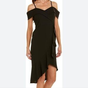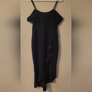New with tags. Off shoulder with ruffle detail. Thick stretchy fabric. Zipper in back. Adjustable straps. Gorgeous dress!!!