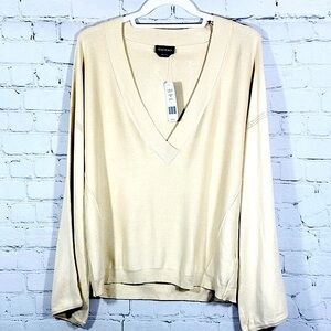 Bebe sweater in sand shell, there’s a small flaw on the sleeve.