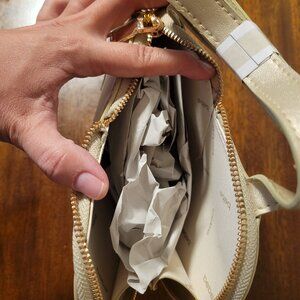 Check out this adorable purse by Bebe. Heart shaped in a shiny Gold color. Features 2 zipper closure. Can be used as a crossbody.