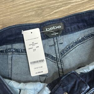 NWT Bebe Jeans High Rise Ruffle Flare Denim Dark Blue Women’s Sz 27