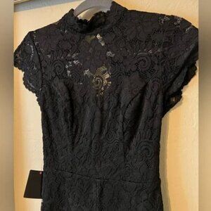 NWT Bebe Lace Romper Open Back High Mock Neck Sweetheart Underlay