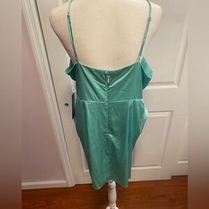 NWT Bebe Mint Satin Faux Wrap Skirt Dress Size Large