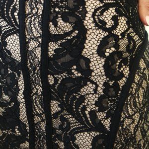 NWT Bebe Multi Media Lace Midi Dress Black Nude