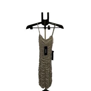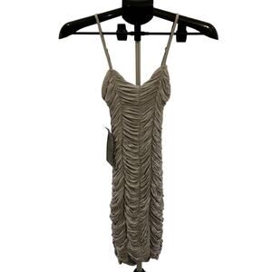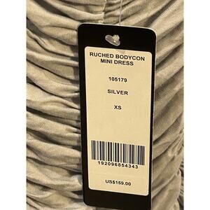 NWT Bebe Ruched Bodycon Mini Dress in Silver Women's size XS