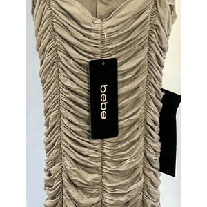 NWT Bebe Ruched Bodycon Mini Dress in Silver Women's size XS in brand new condition.