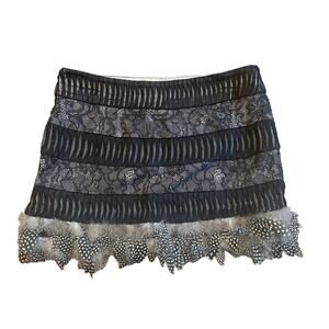 NWT Bebe Vintage Y2K Black Beige Nude Lace Feather Tulle Mesh Silk Mini Skirt 4
