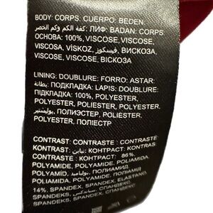 This New Bebe Women's Raspberry Pink Chiffon Faux Wrap Midi Dress features a V-neckline, 3/4 sleeves, and a flattering pullover closure. The dress is made of polyester and viscose chiffon, with a beautiful lace hem slip accent.