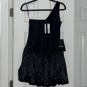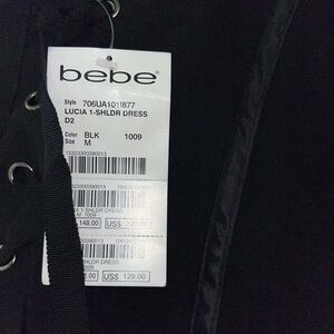 NWT Bebe black dress tie up corsets on back one shoulder size medium