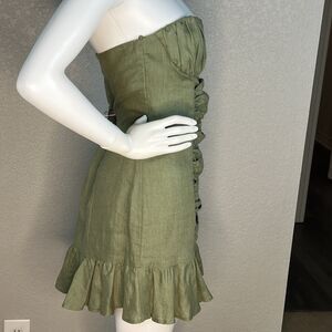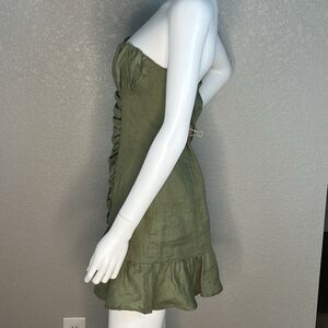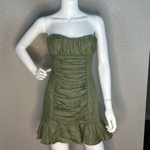 NWT Bec + Bridge Size 6 The Dreamer Mini Strapless Linen Dress Olive Green