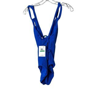 NWT Becca By Rebecca Virtue Line N Sand One Piece - Blue Jay LARGE