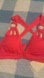 Triangle bikini top features tortoise ring connectors with tear drop cutouts and offers a supportive under bust band with adjustable crisscross back ties.