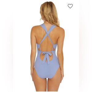 NWT Becca Helena Plunge One Piece Swimsuit in Coastline Blue size Medium