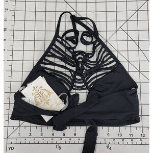 NWT Becca S Electric Current High Neck Macramé Halter Bikini Top Black #86746