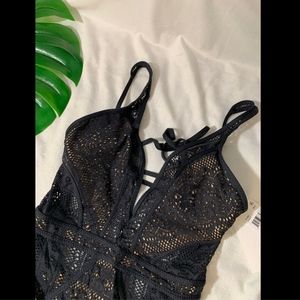 NWT! Becca Show & Tell One-Piece Swimsuit Lace‎ Crochet in Black [SZ XS ]