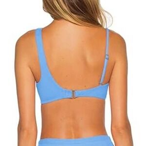 NWT Becca by Rebecca Virtue Ribbed Asymmetrical One Shoulder Bikini Top Blue S