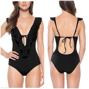 NWT Becca by Rebecca Virtue Socialite Lucille Ruffle Plunge One Piece Swimsuit M