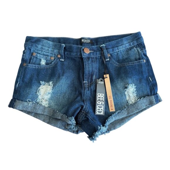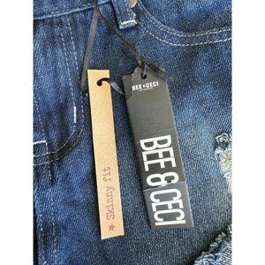 NWT Bee & Ceci Blue Skinny Fit Frayed Distressed Stretch Denim Shorts Women Sz 7