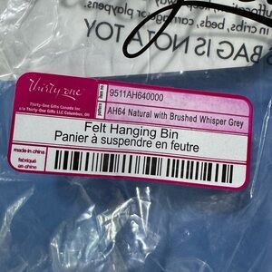 NWT Bee Kind Gray and Cream Felt Storage Basket