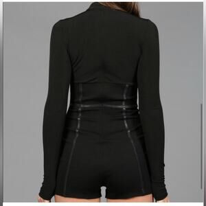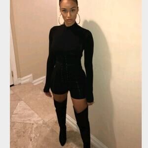NWT Beige & Coco Strut Corset Lace Up Long Sleeve Romper in Black Size XS