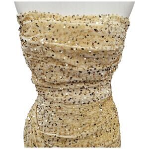 NWT Beige Gold Strapless Sequin Evening Gown with Corset Back on Velvet Fabric