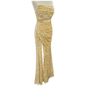 Make a dazzling entrance in this strapless sequin evening gown! The stunning sequin detailing catches the light beautifully, ensuring you'll be the center of attention at any special occasion.