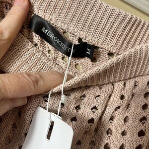 NWT Beige Mauve Knit Crochet Swimsuit Cover-Up Skirt Size Medium Boho Beachwear