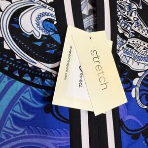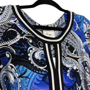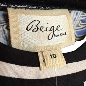 This is a NWT (New With Tags) dress from Beige by ECI. The dress features a beautiful blue and black paisley print. It has a comfortable stretch fabric and 3/4 sleeves, perfect for a variety of occasions. This dress comes in Size 10 and offers a flattering silhouette. Add this lovely paisley print dress to your wardrobe today!
