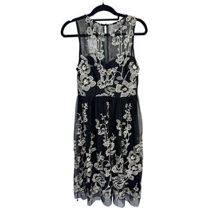 NWT Beige by eci Black Taupe-Gold Embroidered Mesh Cocktail Social Dress 6 $130