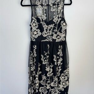 New with tag Beige by eci Black Taupe-Gold Embroidered Mesh Cocktail Social Dress 6 $130.