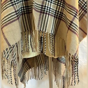 NWT Beige plaid poncho, cape, wrap with Fringe