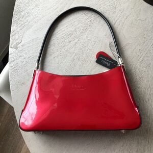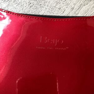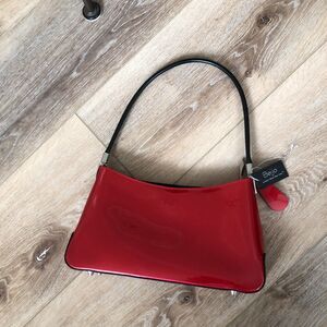 NWT Beijo Red Berry Black Structured Modern Handbag Pocket Book